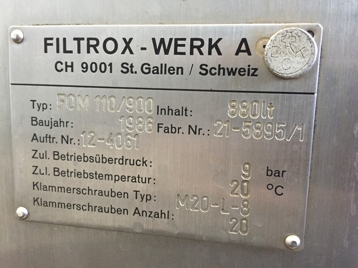 Filtrox Kieselgurfilter 12m²