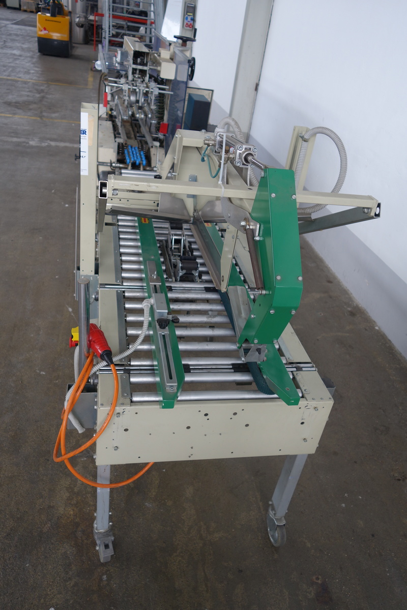Gluing drive: -drive motor for feed belts -pneumatic arm to close the lid