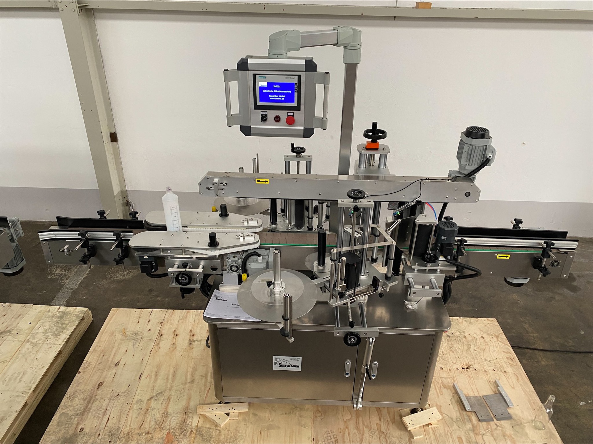 SEEMA Labeller for self-adhesive labels with 2 stations (round and square bottles)
